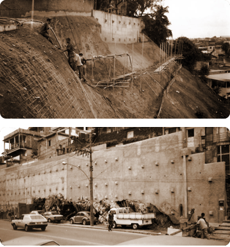 CONTENÇÃO DE ENCOSTAS E TALUDES: Contenções que solucionaram os problemas de deslizamento de taludes em áreas densamente habitadas, como as favelas da Mangueira, Sumaré, Inhaúma, Penha, Alemão, Campinho e Rocinha, para o Instituto de Geotécnica do Município do Rio de Janeiro (Fundação a GEORIO). CONTENÇÃO DE BLOCOS DE ROCHA: – Olímpico Clube – Copacabana, RJ.